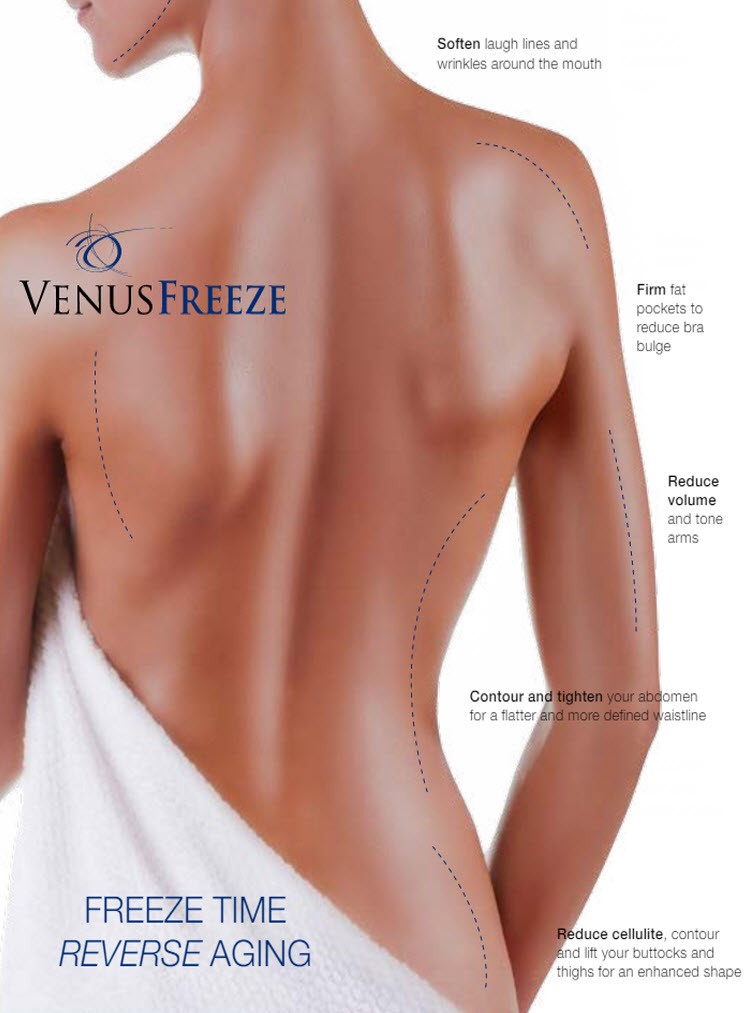 If you want to get rid of fat, but want to avoid a surgical procedure such as liposuction, Venus Freeze may be right for you. Venus Freeze body contouring is safe and painless with no downtime. Aesthetically, Venus Freeze is superior to liposuction as it simultaneously treats cellulite and loose skin.