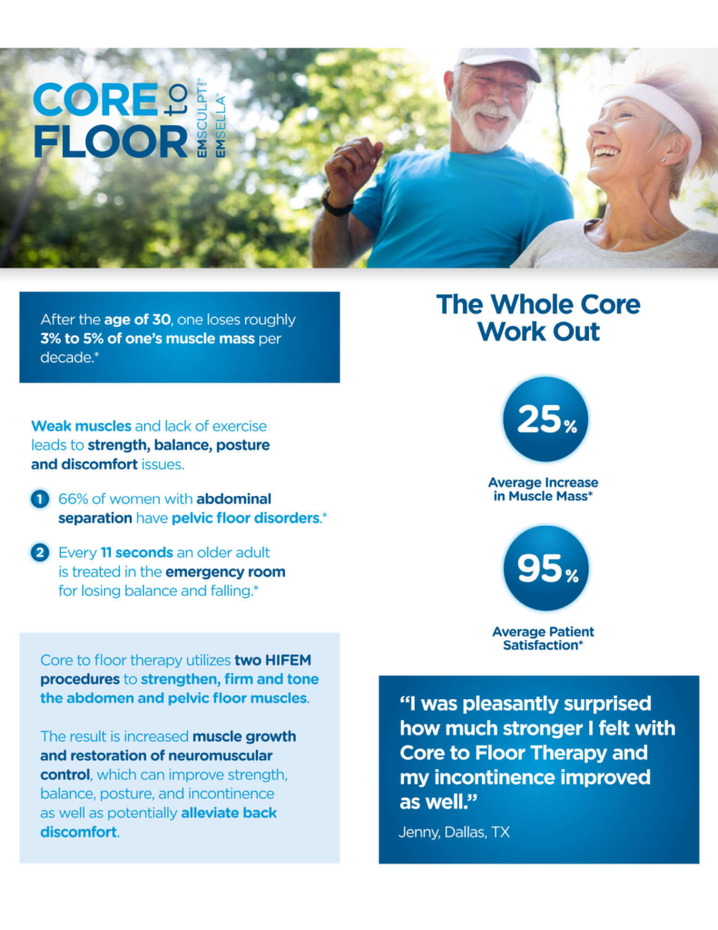 Regardless of age, muscles are vital to your overall health. Muscles comprise 35% of your body and allow for movement, balance, physical strength, organ function, skin integrity, immunity and wound healing. Now EMSCULPT is approved to build muscle in 6 different areas of the body.