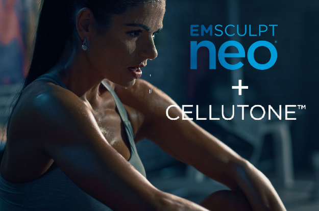 TAUT and TONED therapy that EMSCULPT NEO and CELLUTONE to simultaneously address skin imperfections caused by cellulite, the lack of muscle and fat.